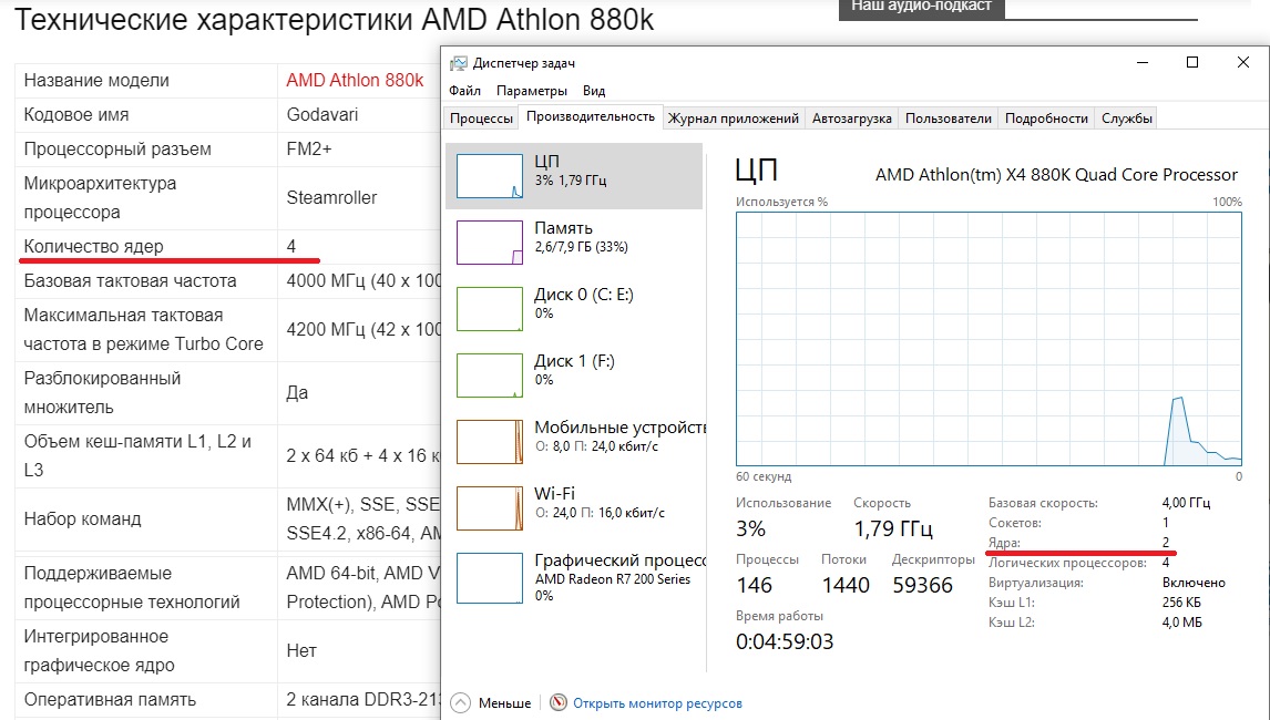 У меня с amd x4 880k тоже самое, проверь в диспетчере задач, сколько ядер он у тебя показывает? У меня 2, например, хотя он чётырёхъядерный